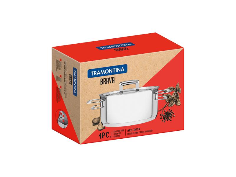A Caçarola Tramontina Rasa em Aço Inox Fundo Triplo com Tampa Plana e Alças 16 cm de diâmetro 1,4 L é ideal para você preparar aquela comidinha caseira feita com muito amor e cheia de sabor. A caçarola da linha Brava também traz toda a elegância que você procura para a sua cozinha, misturando traços modernos e clássicos do aço inox. Para deixar a sua receita ainda mais saborosa e o preparo ainda mais fácil, o fundo triplo (aço inox + alumínio + aço inox) distribui o calor igualmente pela caçarola, garantindo que o cozimento seja rápido e uniforme.
