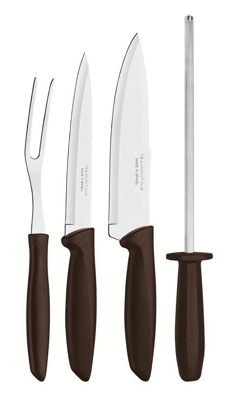 O Kit para Churrasco Tramontina Plenus com Lâminas em Aço Inox e Cabos de Polipropileno Marrom 4 Peças é perfeito para servir à sua família e amigos um saboroso churrasco. Com lâminas fabricadas em aço inox, as peças oferecem mais qualidade e resistência, pois são submetidas a um tratamento térmico especial. E chaira conta com haste de aço carbono cromado para manter suas facas sempre com um bom fio de corte. Além de deixar os ambientes mais bonitos, devido aos cabos em polipropileno na cor marrom, elas ainda são de fácil e leve manuseio. A Tramontina tem tudo para deixar seus momentos muito mais gostosos!