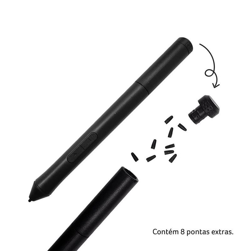 Os parâmetros desenvolvidos no mais alto nível permitem que você desenhe com fluidez e máxima performance. São 8192 níveis de sensibilidade à pressão da caneta, taxa de velocidade de leitura de 233 pps e resolução de 5080 lpi. Caneta digital inteligente, não querer pilhas ou cargas. Leve e ergonômica, se adapta à sua mão com naturalidade e possui dois botões para funções rápidas, além de vir com 8 pontas extras. Cada linha traçada é refletida na sua tela de forma natural e precisa.