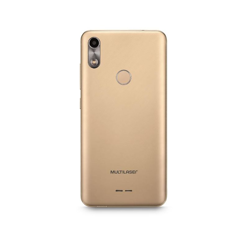 Smartphone Multilaser F Dourado 3G 32GB, mais versatilidade para seu dia a dia. Segurança e praticidade com desbloqueio por impressão digital. Aproveite muito mais do seu smartphone com o Android 9.0 edição GO. Tela de 5.5" 189 para melhor visualização de fotos e vídeos. Câmera traseira de 5MP frontal de 5MP. Bateria de 2500 mAh que não te deixa na mão. Memória interna de 32GB, 1GB de memória RAM e Processador Quad Core. Acompanha Capa e Película.